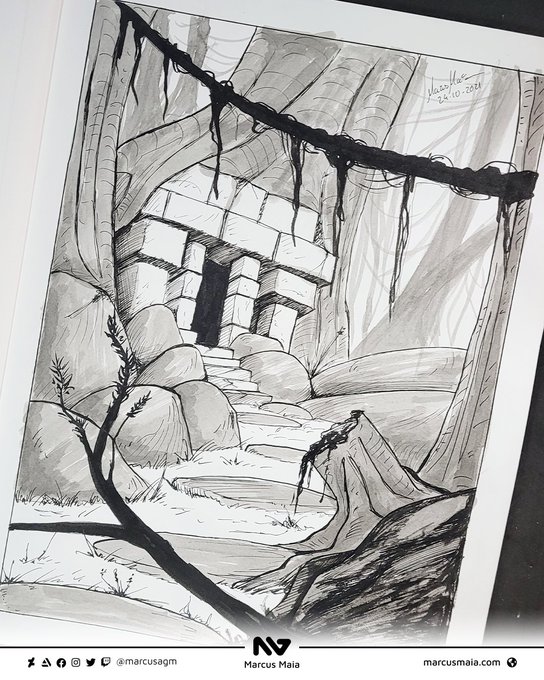 ttvArtTober - Dia 24 Tema: Ruína / Ruin 🗿 Imagina o tanto de histórias e segredos escondidos em lugares como esses. #ttvarttober #ttvarttober2021 #inktober #inktober2021 #inkdrawing
