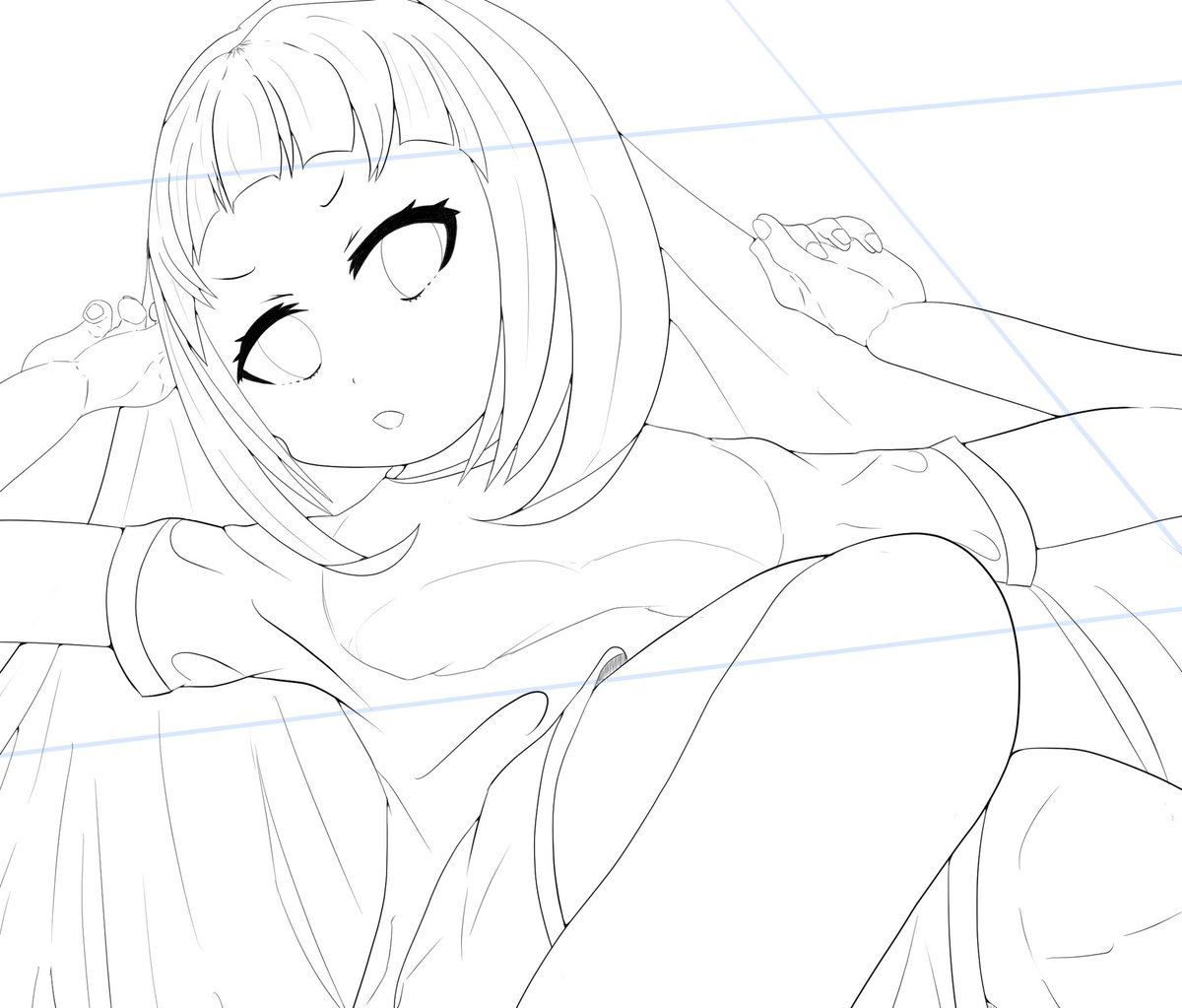 シオンちゃん線画まで🌙 仰向け構図の練習〜 #イラスト好きな人と繋がりたい #絵描きさんと繋がりたい #イラスト練習中