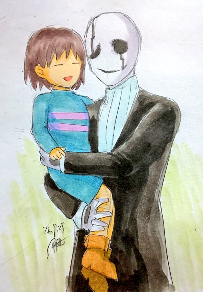 子どもの抱っこが得意なガスター博士 #undertale #gaster #イラスト