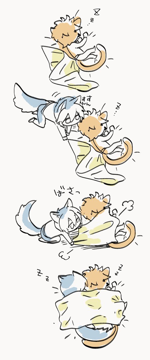 猫の日だったそうなので昔描いた犬猫兄弟再掲しちゃう #食物語_rkgk