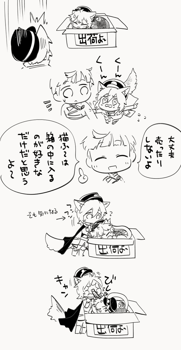 34 94 猫の日だったそうなので昔描いた犬猫兄弟再掲しちゃう #食物語_rkgk 23/02/23 01:24