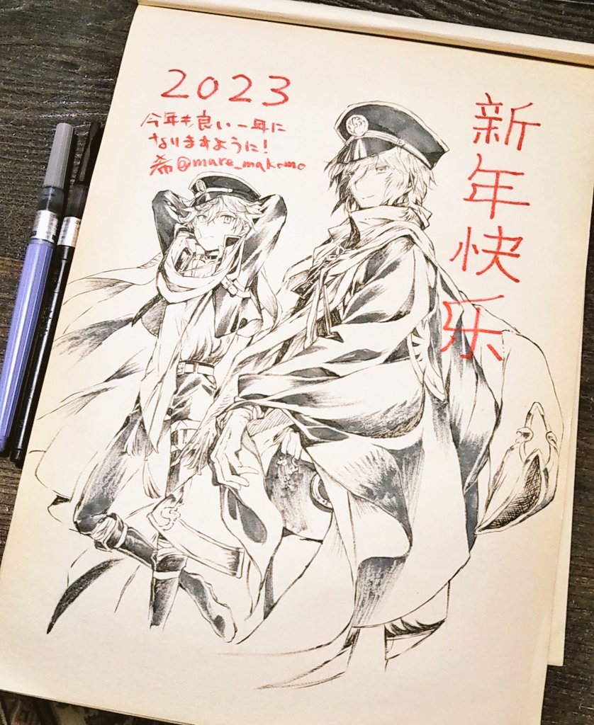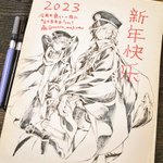 40 86 2023年筆ペンで描き初め! 昨年はしょくもで色々なご縁をいただきましてありがとうございました。今年もたくさん絵を描けるといいなあ #食物語_rkgk 23/01/01 23:01