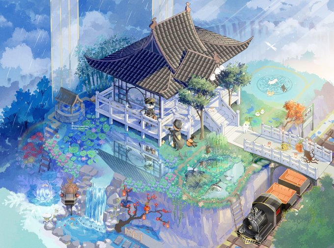 22 46 2023年3月19日, 春COMI内にて開催されたしょくもプチ(@319shoku_puchi)にて、カレンター企画に参加させていただきました。担当は6月です! これは断ち切りより大きい全体図。汽車も動くんだよアピールをしております。小動物や食魂の数を数えて遊んでみてくださいな😋✨ #食物語_FA 23/06/01 12:39