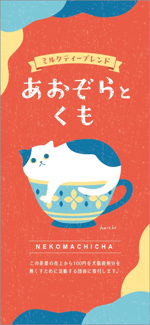 【🐈️ お知らせ 🐈️】 アートスープさん(@GalleryArtsoup)の猫町茶に参加し、紅茶「あおぞらとくも」のパッケージをデザインしました! 1袋につき100円が動物愛護団体に寄付さる企画です。 すてきなパッケージがたくさんありますので、よければ見てみてくださいね!🐕️ artsoup.buyshop.jp/items/54687236