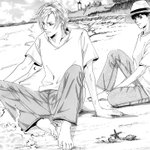 #アッシュ・リンクス誕生祭2022 #アッシュ・リンクス生誕祭2022 吉田先生&アッシュのお誕生日そして英二君の日おめでとうございます㊗毎年夏にはケープコッドの家に帰ってパパの手料理でお祝いしてもらって欲しいなあ、などど妄想しつつらくがき。小さい頃はグリフお兄ちゃんとも海で遊んだかな?