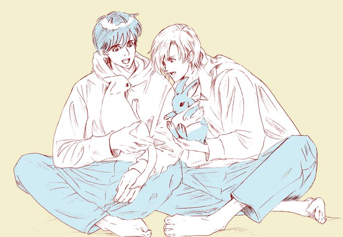 #英二の日 #8月2日は英二の日 みんな大好き英二くん🐰英二の日トレンド入りおめでたいです💖すてきタグに過去絵でお便乗させて下さい、アッシュはもちろん伊部さんにショーターにスキップにシンくんブランカ先生、オーサーや月龍やゴルぱっぱも虜にするBF界でも全方位モテBOY英二くんずっと好きだ!