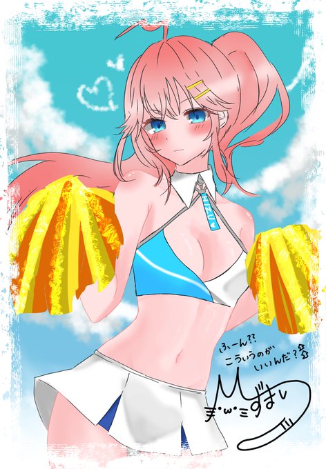 病院の待ち時間で描いてた絵! ブルアカのチア服?可愛いよね! なんか首輪つけれてるみたいだし! #ひずまり #ブルーアーカイブ #イラスト