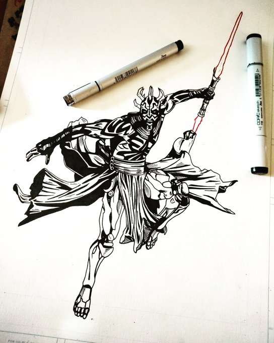 Darth Maul for the Star Wars leg sleeve round 3 finally all drawn up!! #DarthMaul #StarWars #Sith #Art #StarWarsArt