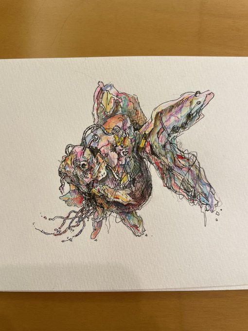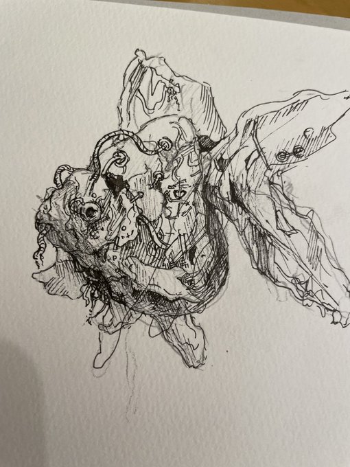 美術の時間に描いている金魚ちゃん 時の流れがテーマ #春の創作クラスターフォロー祭 #ペン画 #金魚イラスト
