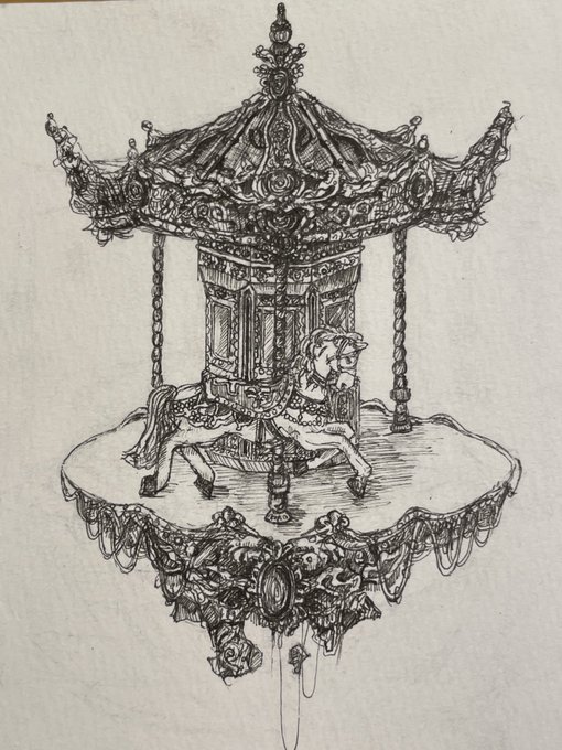 「孤独と回転木馬」 1年前に描いた作品です #絵描きさんと繋がたい #ペン画