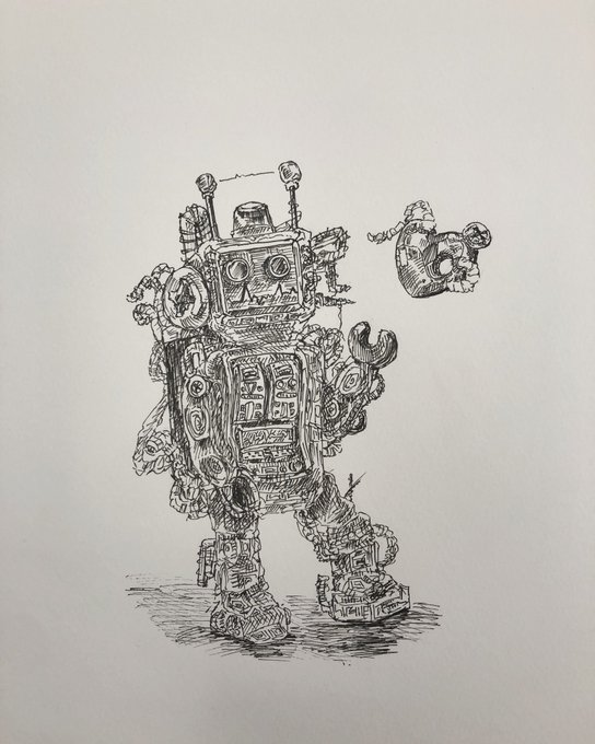 ロボットシリーズ第2弾/中3 #どこかの誰かに刺さればそれで良い #ペン画イラスト #ロボット #ロボットイラスト