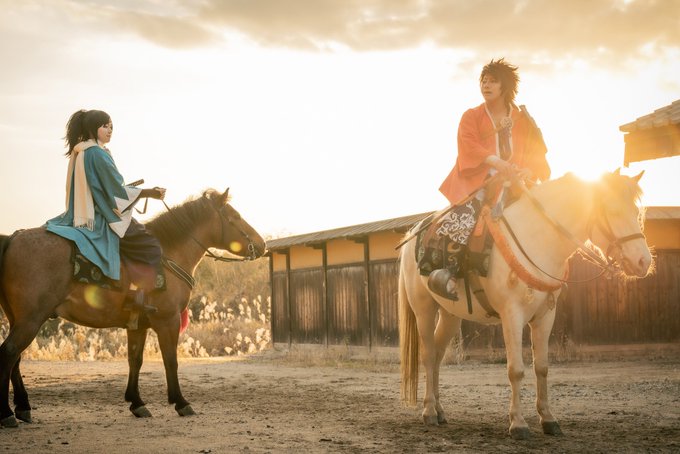 #コスプレ乗馬会in彦根オープンセット2022 せっかくなのでまだ上げてなかった差分!この企画は本当大変だったし、いろんな方にめちゃくちゃ協力お願いしてしまったけど😂楽しかったなぁ。3枚目は馬好き的には大変嬉しいショットでした🤭 陸奥守吉行 MARICO 大和守安定 由茄さん 📷TAKAさん