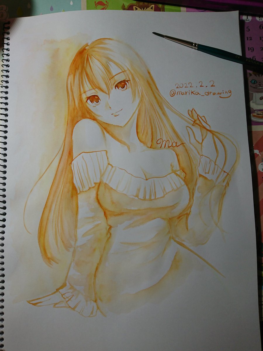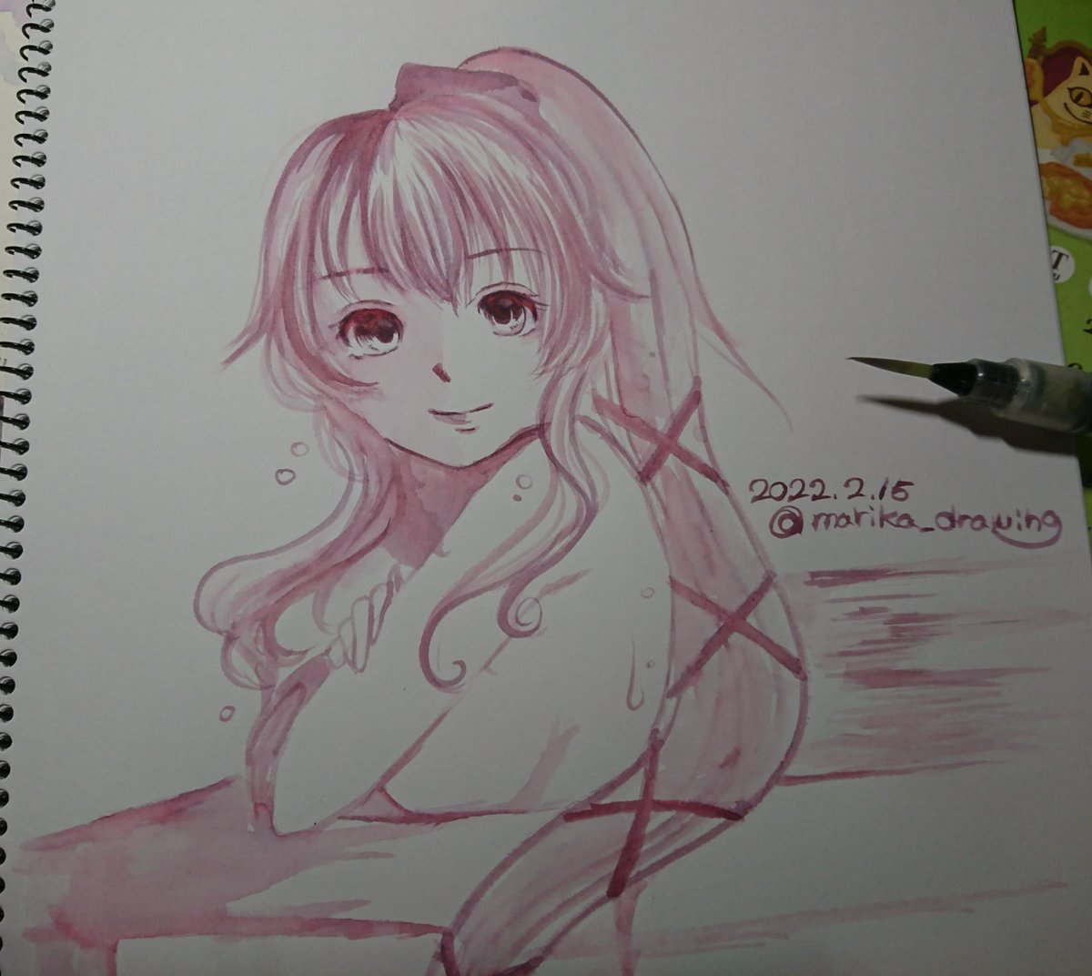 #艦これ版深夜の真剣お絵描き60分一本勝負 #艦これ版真剣お絵描き60分一本勝負_20220202 #艦これ #長門 #アナログイラスト 今日の出来はなかなかイイのでは✨(良きおっぱ……) 1色塗り最近はまってるなぁ(*´ω`*)💕