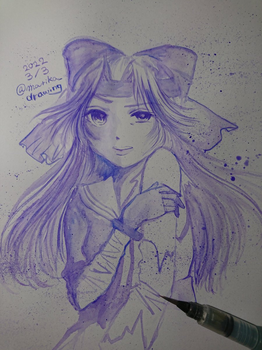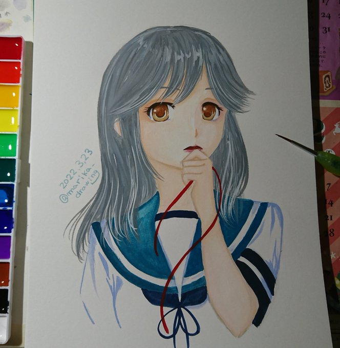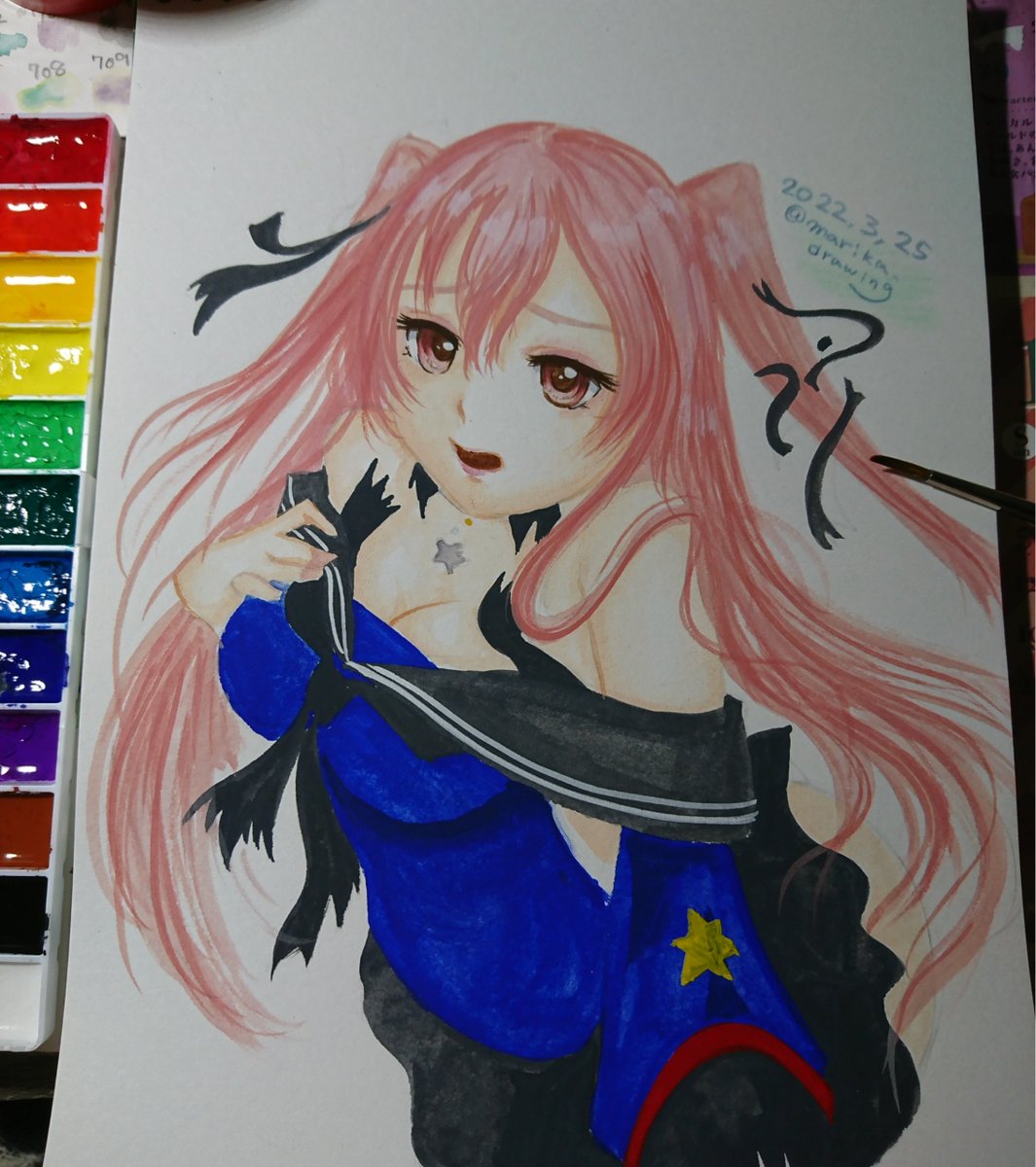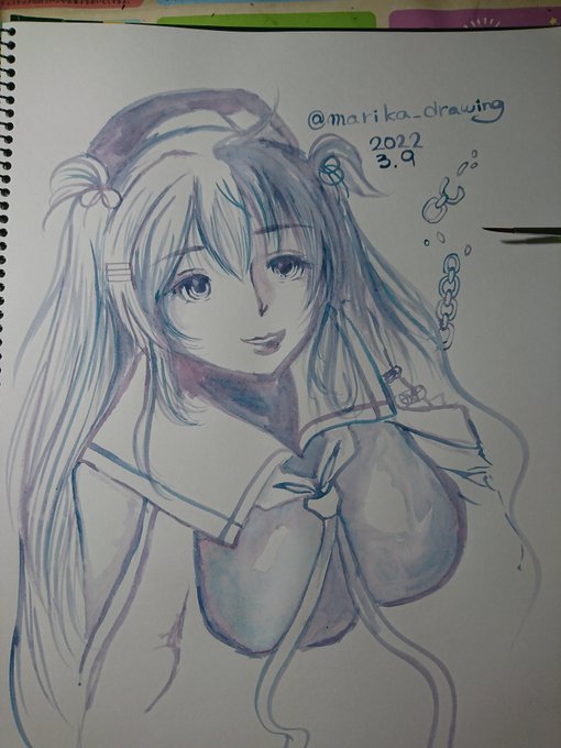 塗りかた変えたら1hじゃ足りなかった😅 有明ちゃん初描き✨ #艦これ版深夜の真剣お絵描き60分一本勝負 #艦これ版真剣お絵描き60分一本勝負_20220323 #艦これ #有明 #絵柄が好みっていう人にフォローされたい #Watercolor #アナログイラスト