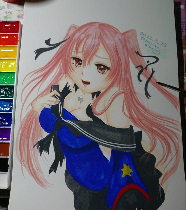 「…ちょっといいとこ見せたかったな」 #艦これ版深夜の真剣お絵描き60分一本勝負 #艦これ版真剣お絵描き60分一本勝負_20220309 #村雨 #艦これ #アナログイラスト #Watercolor