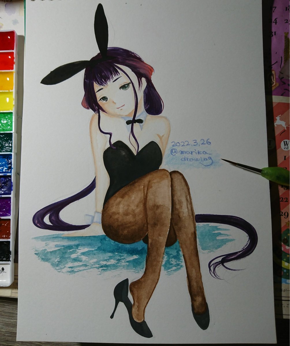 「提督殿…❤️」 なんとなくで描いてるから何でバニーなのかは聞かないで🙄💦 #艦これ版深夜の真剣お絵描き60分一本勝負 #艦これ版真剣お絵描き60分一本勝負_20220326 #艦これ #山汐丸 #アナログ絵描きさんと繋がりたい