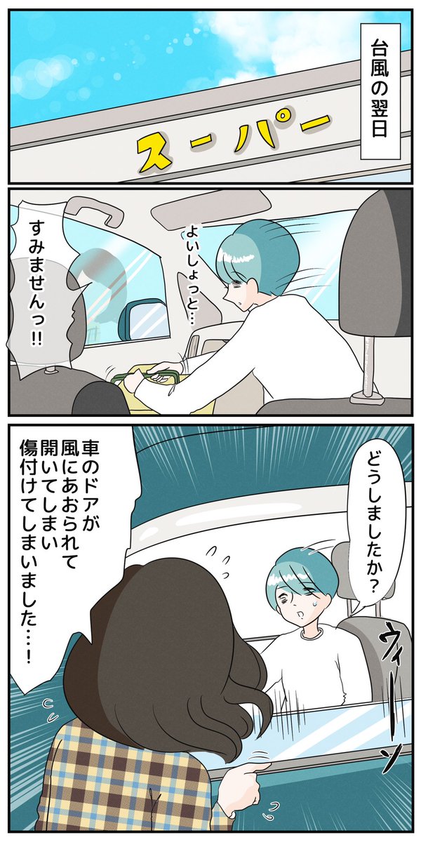 【 ドアパンチ 】 本当は更に修理中の代車料金もかかるので、下手したら10万越えちゃうんですって!ヒィッ! ドアパンチって逃げられちゃうことも多いみたいだけど(気持ちはわかるけど絶対ダメ)、この方は誠実に対応してくれたので解決済みです。 春は強風の日も多いので自分も気をつけよう😭