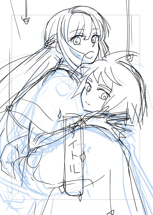 #このタグを見た人はラフ画とその完成絵を見せる 表紙用に途中まで塗ったけど、塗り直すので供養がてら…… 漫画はあんまりラフ残さない事多いですね…(動作重くなるので😂