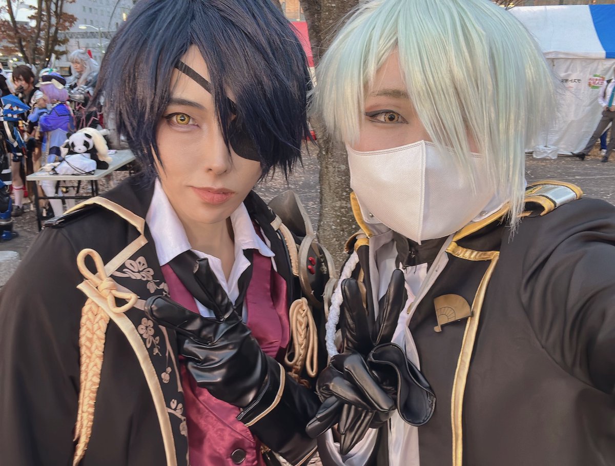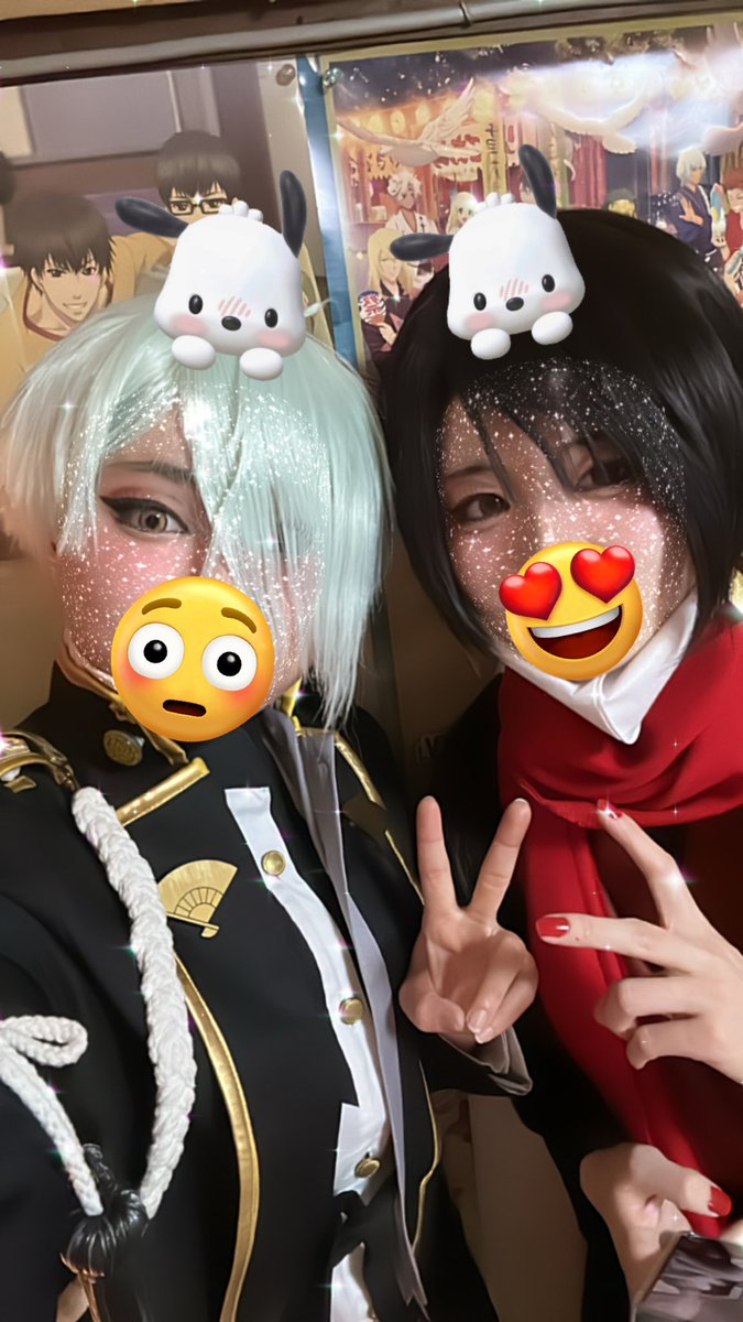 今日は富士コスだ! 膝丸で参戦して参る🔥よろしくお願い致します🙇♀️加州のコスしてる子と歩いてます🍀*゜@KAMADO_KYOUDAI #富士コス