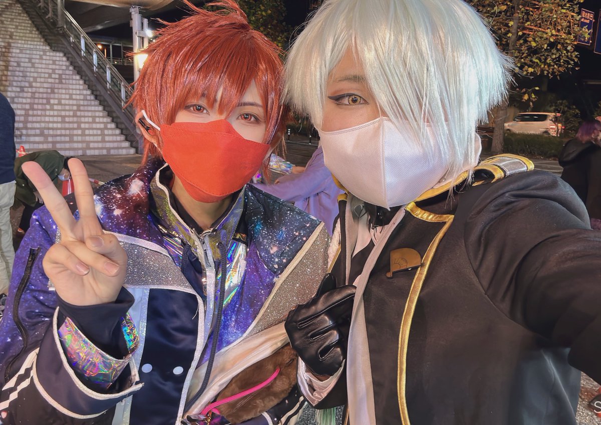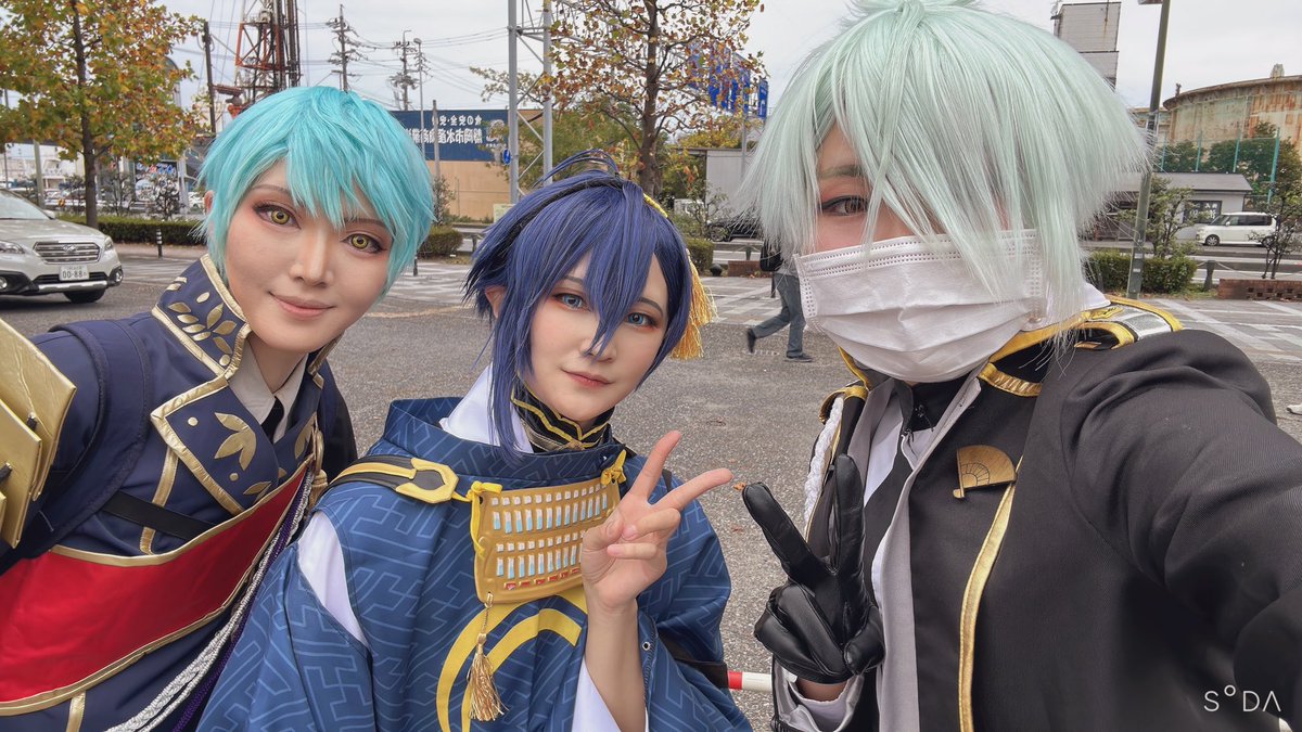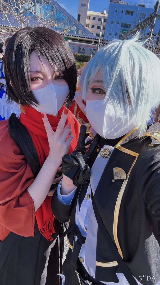 1 1 今日は富士コスだ! 膝丸で参戦して参る🔥よろしくお願い致します🙇♀️加州のコスしてる子と歩いてます🍀*゜@KAMADO_KYOUDAI #富士コス 22/11/19 10:04