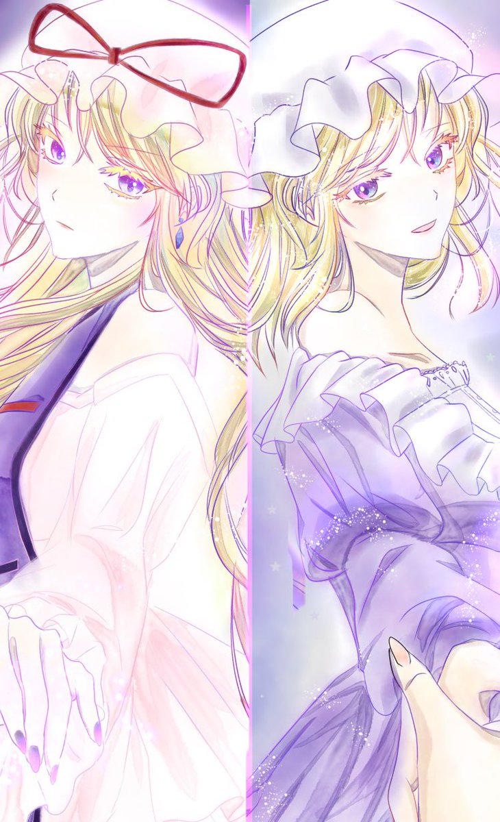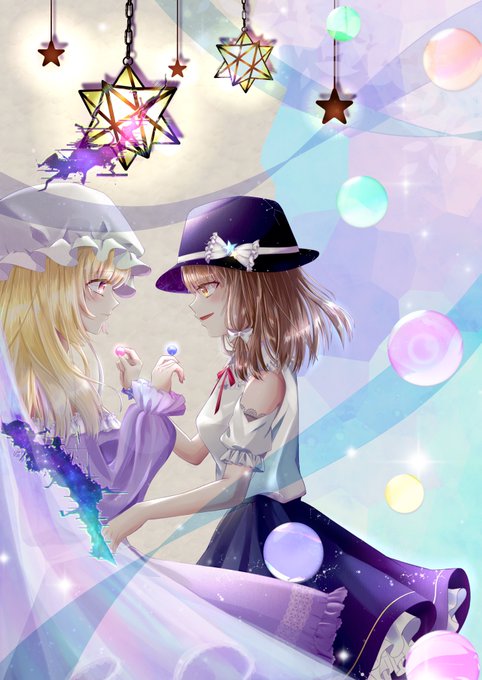 これがしたかったんだよ。 …満足。今度こそ寝よう。 こういうのかっこいいよね。。(私だけでは無いと信じてます。。) #東方Project #東方イラスト #イラスト #イラスト初心者 #秘封倶楽部 #八雲紫 #マエリベリー・ハーン