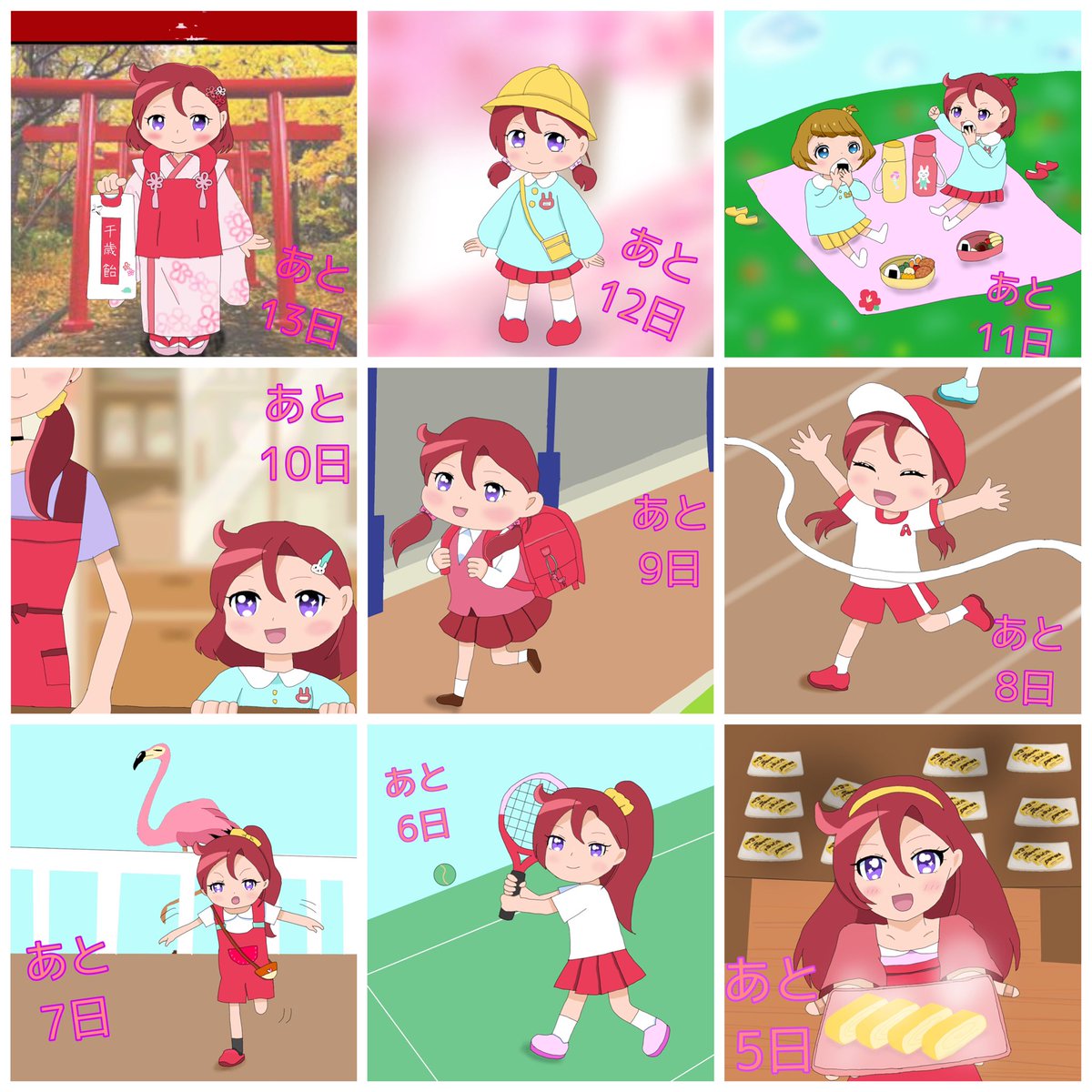 #今月描いた絵を晒そう あすか先輩の誕生日カウントダウンがほとんどです! こう見ると、今月はいっぱい描いたな〜