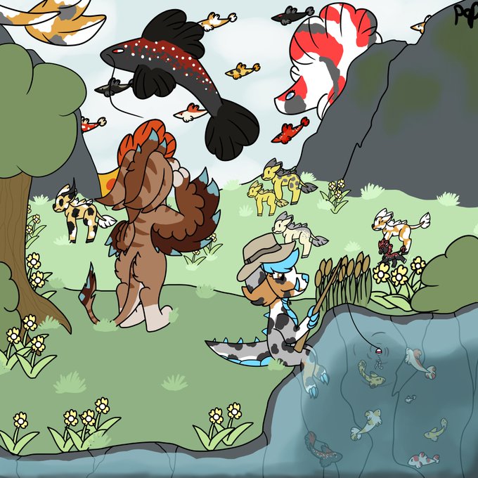 day 4 fish inktober sorry for this being a big delay some stuff kind of came up so the rest of the few days that I missed will be a bit behind^^: I made a picture of my favorite characters in a fish world ^^ #inktober #DigitalArtist #digitalart #furryartist #Fursona