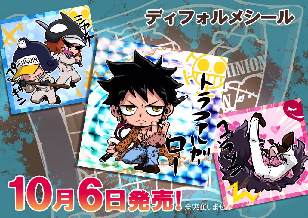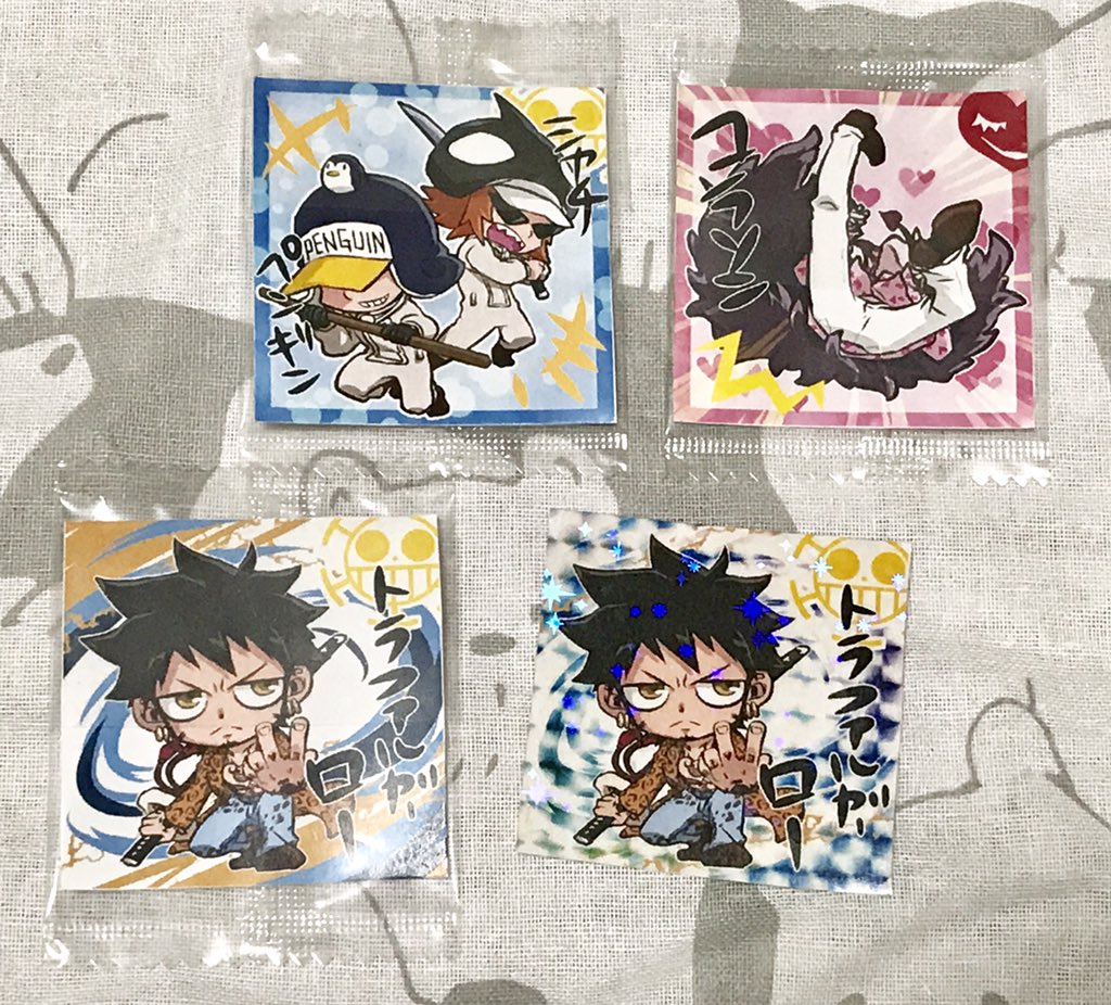 ローさんお誕生日おめでとう!!(*゚▽゚ノノ゙☆パチパチ 鬼滅とか呪術で出てるウェハースのデフォルメシールをワンピで!└(゚∀゚└) (┘゚∀゚)┘ワッショイwww #トラファルガー・ロー誕生祭2021