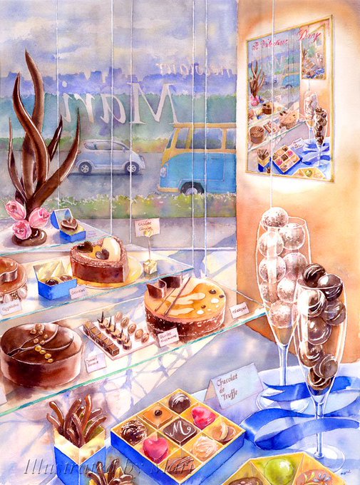 Chocolatier | pixiv.net/member_illust.… 他のお菓子を描いた水彩画はこちら♪ facebook.com/Aquarellemari/… … … … … … … … … … … … #水彩絵を流して水彩民を増やそう #水彩 #フードイラスト