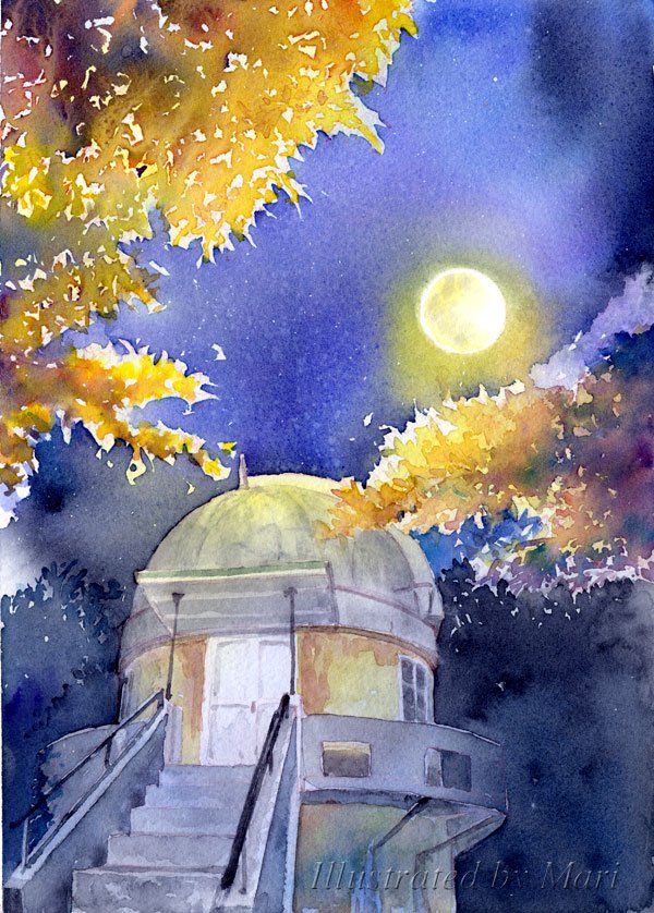 月夜の晩に | marine-island [pixiv] pixiv.net/member_illust.… 他の風景水彩画はこちらです♪ facebook.com/Aquarellemari/… #水彩絵を流して水彩民を増やそう #水彩