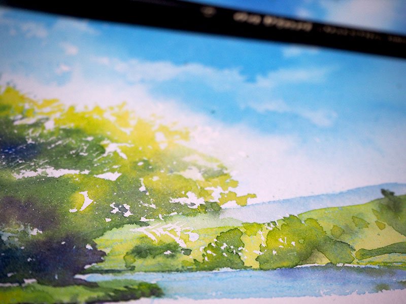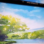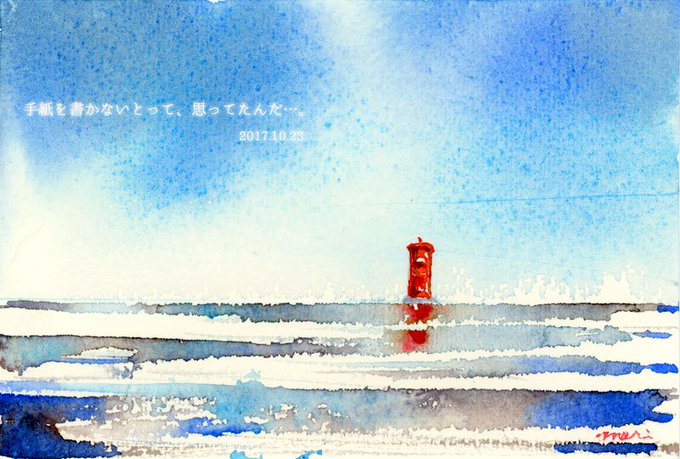 暑いと、つい描くのは涼し気なものになっちゃうね。 シンプルな水彩画を、平筆だけで描くというのを模索中〜♪ #透明水彩 #水彩画 #水彩絵を流して水彩民を増やそう #画材研究タグ #ホルベイン #ウォーターフォード #平筆