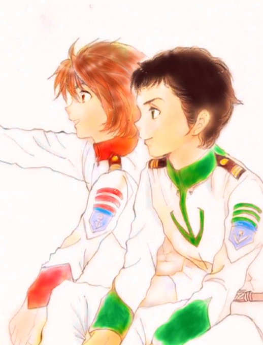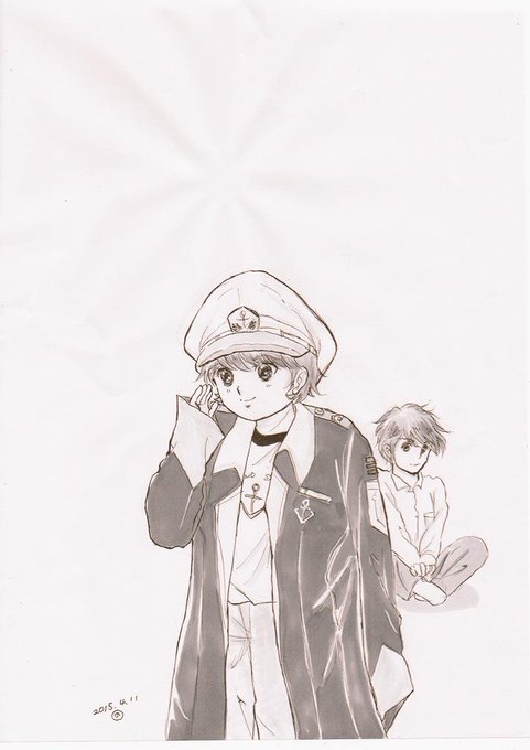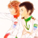 いつかじぶんピッタリのせいふく、きれるかなー。けいれい! #ヤマトでお絵描き60分一本勝負 #ymt60draw 誰だかわからないが、古代兄弟!