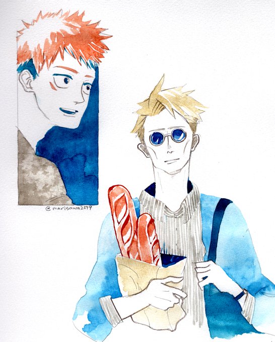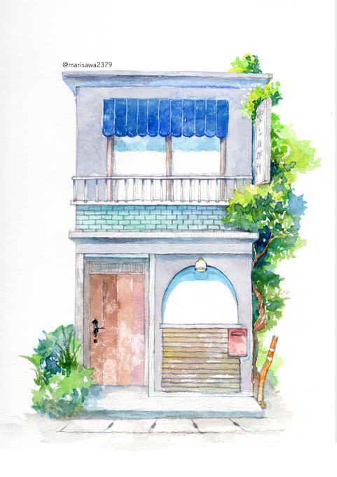 #背景も描いたよ1128 ほんとに背景「も」描いたけど…みたいなことになったのですが、とても気に入った妄想の相談所が描けたのでタグでUPします。師弟がリノベ的なことしてこんな家に住んでくれ!という感じ…すごい楽しく水彩できた〜〜〜 twitter.com/marisawa2379/s…