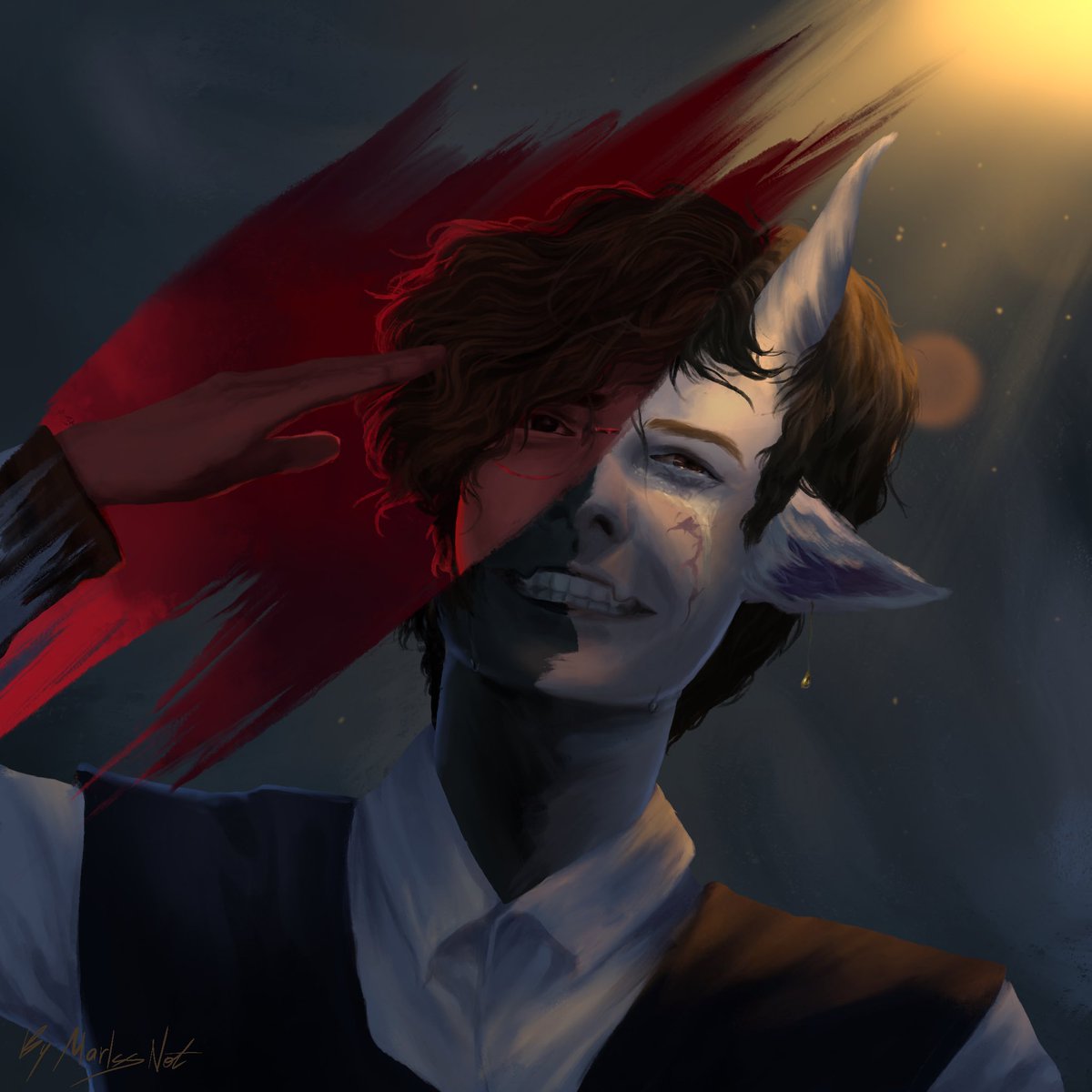 So, Hero or Villain? (Both and neither) Based on the amazing fanfic “Hush Now (You We’re Lost but Now You’re Found) by @corpsey_art on ao3 #hushnow #hushnowfanart #tommyinnitfanart #wilbursootfanart
