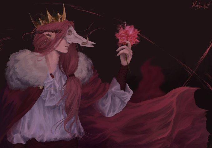 Rose petals littering the ground beneath the Ghost, ironically called Boo #ghostboofanart #ranboofanart #dreamsmpfanart