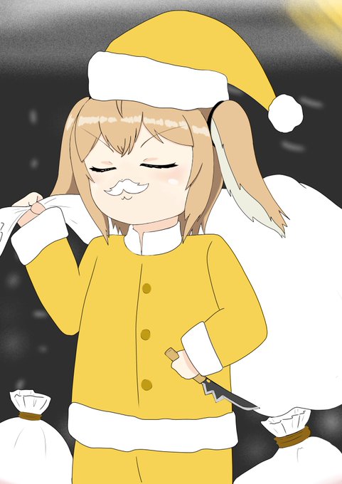 FよりのBな年賀状描いてる途中の深夜テンション的な何かのアレのノリで描いちゃったヤツです。 メリーくすねるマス #はねるあーと #因幡はねる