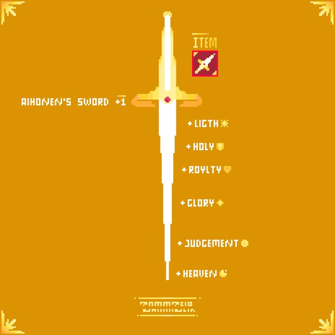 2 0 Aihonen sword +1 Basically you use it against undead creature #pixelart #ドット絵 22/03/23 19:33