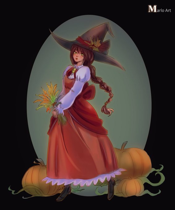 First Day of October! Who's joining an artchallenge? I joined #elbydrawswitchtober ^~^ Prompt 1 was Autumn. #witchtober2020 #witchtober #inktober #artchallenge #October1st #Halloween2020 #witch #autumn