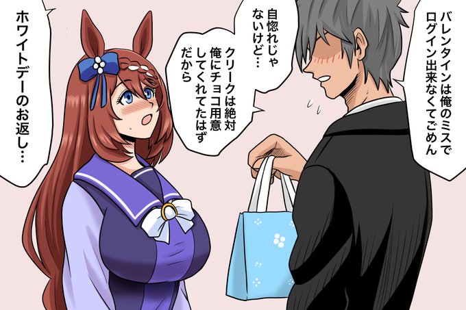 バレンタインもらってないのにホワイトデーのお返しをするスーパークリークのトレーナー twitter.com/maro1108/statu…