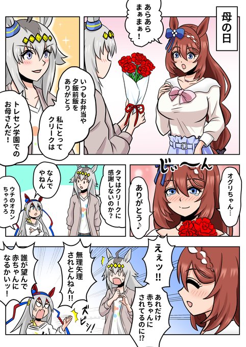 母の日のスーパークリーク、オグリキャップ、タマモクロス(2日も遅れてすみません) #ウマ娘
