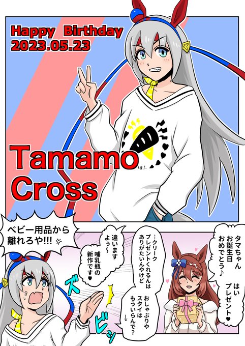 タマちゃん誕生日おめでとう!どれだけ赤ちゃん扱いされてもクリークと親友でいてくれてありがとう! #ウマ娘 #タマモクロス生誕祭2023