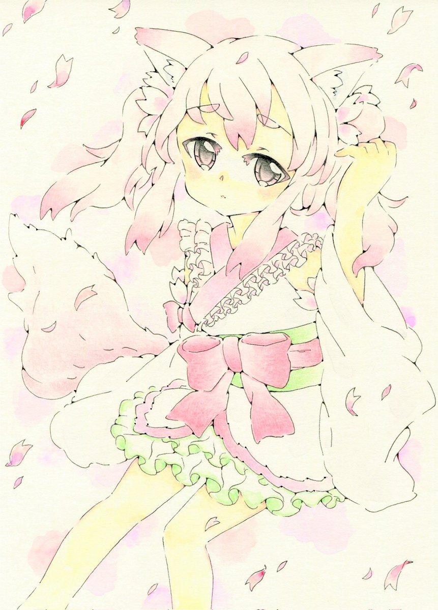 オリジナルも東方も可愛く 描けて良かったな(* ̄ω ̄)ф… #今年も残りわずかなのでお気に入りの4枚を貼る #オリジナル #東方Project #アナログイラスト #透明水彩 #色鉛筆 #絵描きさんと繋がりたい