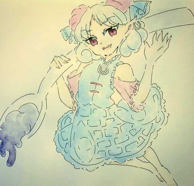 初描きとうてつ 色のせるだけで精一杯(; ̄ω ̄)ф… #深夜の真剣お絵描き60分一本勝負 #東方Project #饕餮尤魔 #アナログイラスト #透明水彩 #色鉛筆 #アナログ絵描きさんと繋がりたい
