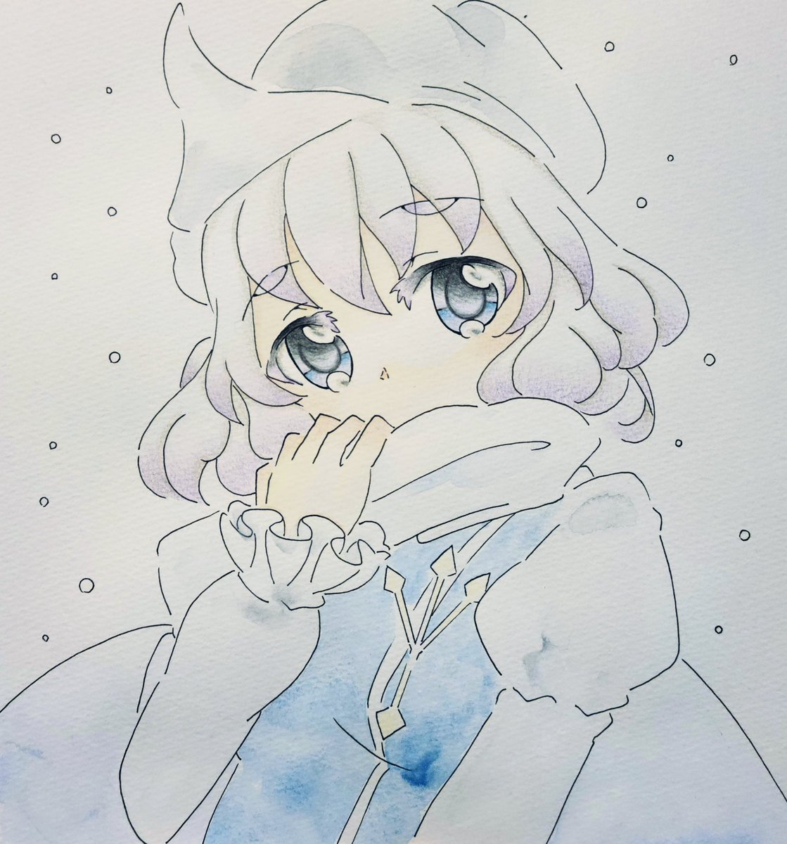 雪の季節レティ(* ̄ω ̄)ф… #深夜の真剣お絵描き60分一本勝負 #東方Project #レティ・ホワイトロック #アナログイラスト #透明水彩 #色鉛筆 #アナログ絵描きさんと繋がりたい