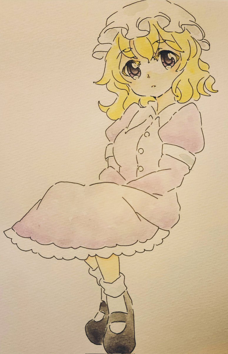 シンプルイズマリー(* ̄ω ̄)ф… #深夜の真剣お絵描き60分一本勝負 #東方Project #マエリベリー・ハーン #アナログイラスト #透明水彩 #色鉛筆 #アナログ絵描きさんと繋がりたい