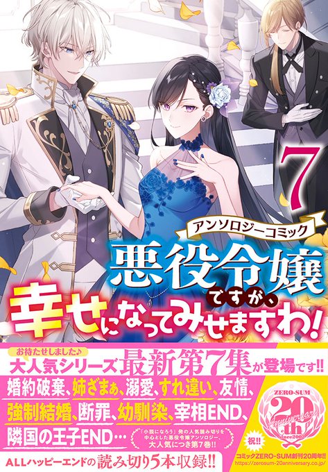 ZERO-SUMコミックス様より本日発売の「悪役令嬢ですが、幸せになってみせますわ! アンソロジーコミック 7」引き続きカバーイラストを描かせていただいております。7巻も華やかな令嬢たちの活躍を楽しんでいただけますと幸いです。どうぞよろしくお願いいたします!
