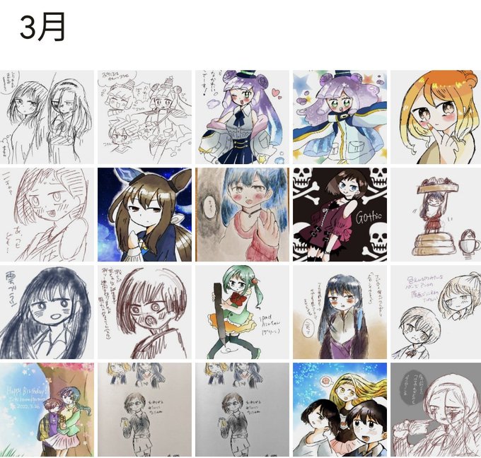 #今月描いた絵を晒そう 描き納めのタイミングいつ来るか不明なのでかわりに年末わくわくまとめをやるます いっぱい描いた!アリスのカラー絵とクリスマスの絵と雪ミクと告白する市山が特にお気に入りです!!!(全部でわ?)