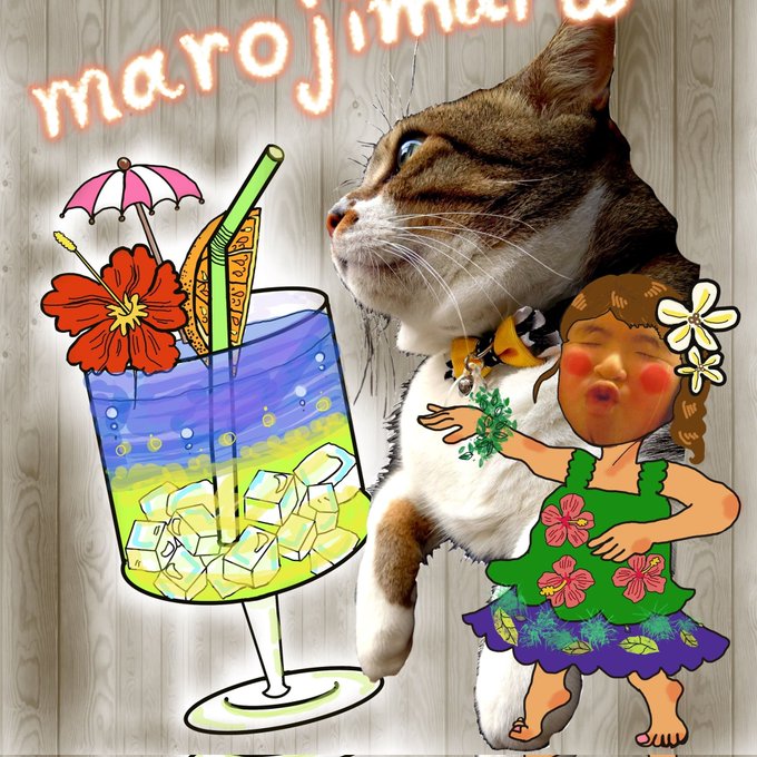 マロさんヨナさん🐈🌴🍍夏バージョンです #オリジナルデザイン #イラスト #Tシャツ