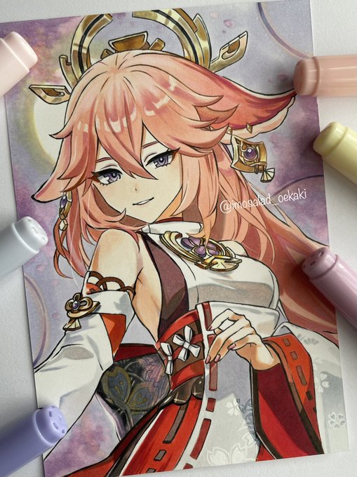 4 31 やえさま(*ˊᵕˋ*) #原神 #GenshinImapct #八重神子 #模写 #アナログイラスト #イラスト好きと繋がりたい 22/03/09 17:05