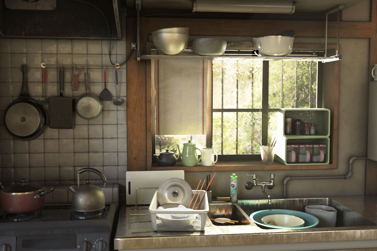 141 1044 台所作りました。久しぶり背景作ったから結構時間かかった… #CG #3DCG #substancepainter 20/05/18 19:41